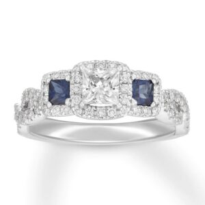 Diamond/Sapphire Ring 1 ct tw Princess-cut 14K White Gold