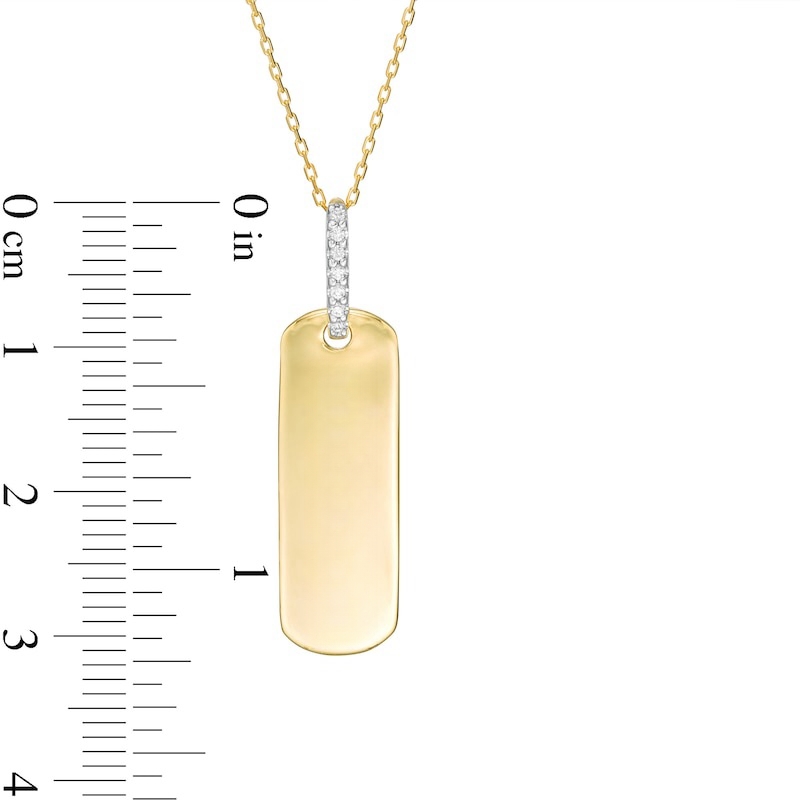 Wear your values with pride with this statement-making diamond pendant. Crafted in warm 10K gold, this petite tag features the word inscribed vertically along the center. Diamonds line the bail for a hint of sparkle. Captivating with 1/20 ct. t.w. of diamonds and a bright polished shine, this pendant suspends along a 16.0-inch cable chain with 2.0-inch extender that secures with a spring-ring clasp. This exclusive fine jewelry collection inspires you to wear your strength, confidence and power.