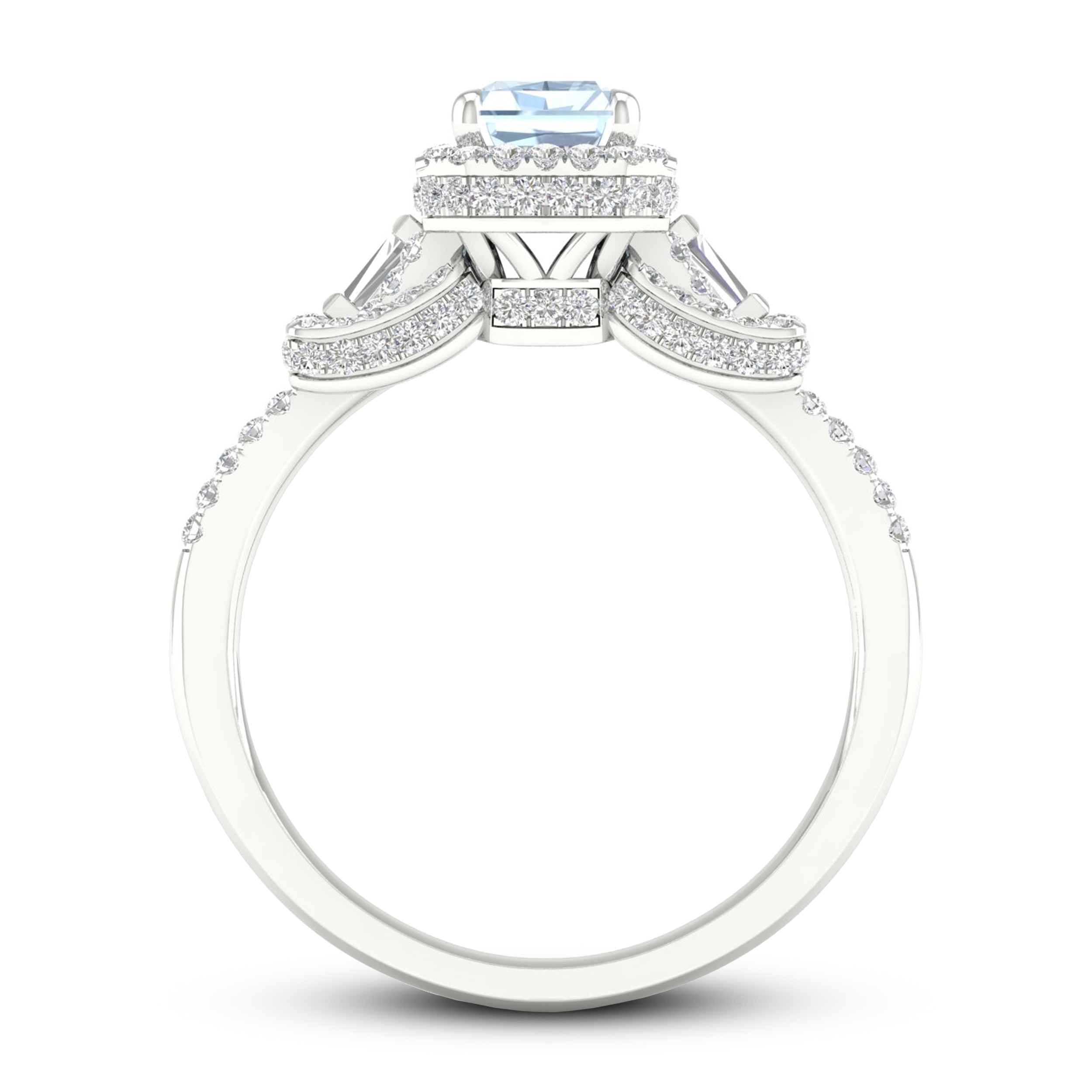 Aquamarine & Diamond Engagement Ring 1/2 ct tw Emerald/Round/Baguette-cut 10K White Gold